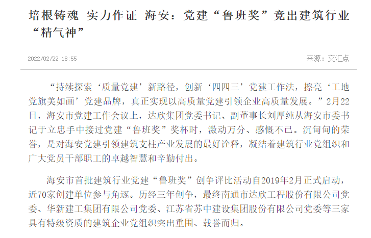 版權(quán)所有 © 2007-2021 南通市達(dá)欣工程股份有限公司版權(quán)所有 公司地址:江蘇省海安高新技術(shù)產(chǎn)業(yè)開(kāi)發(fā)區(qū)通陽(yáng)東路10號(hào)