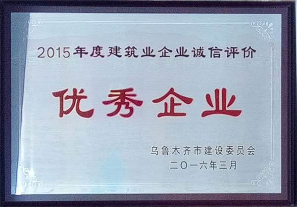 日前,烏魯木齊市建設委員會公布對全市建筑企業(yè)誠信綜合評價(評價包括市場行為、質量行為及安全文明施工)結果,我公司在全市660家企業(yè)中排名12名,公司被授予“2015年度建筑業(yè)企業(yè)誠信評價優(yōu)秀企業(yè)”。