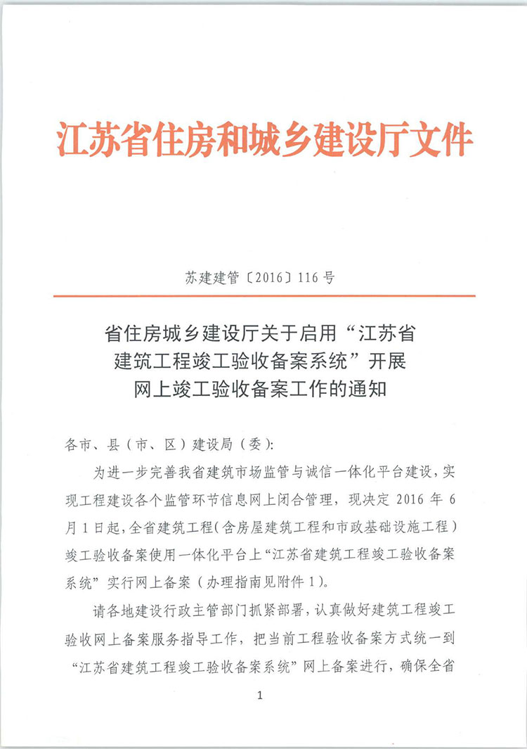 省住房城鄉(xiāng)建設(shè)廳關(guān)于啟用“江蘇省建筑工程竣工驗收備案系統(tǒng)”開展網(wǎng)上竣工驗收備案工作的通知