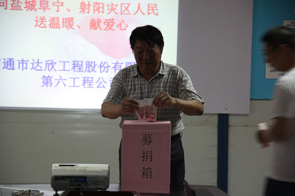 6月23日下午,江蘇省鹽城市阜寧縣、射陽縣部分地區(qū)突發(fā)超強龍卷風,給當地造成重大人員傷亡和財產損失。為幫助災區(qū)群眾渡過難關,體現中華民族“一方有難,八方支援”的傳統(tǒng)美德,7月1日,在黨的95周年生日到來之際,第六工程公司積極響應上級號召,動員全體干部職工尤其是黨員積極行動起來,向災區(qū)進行捐款。