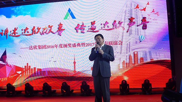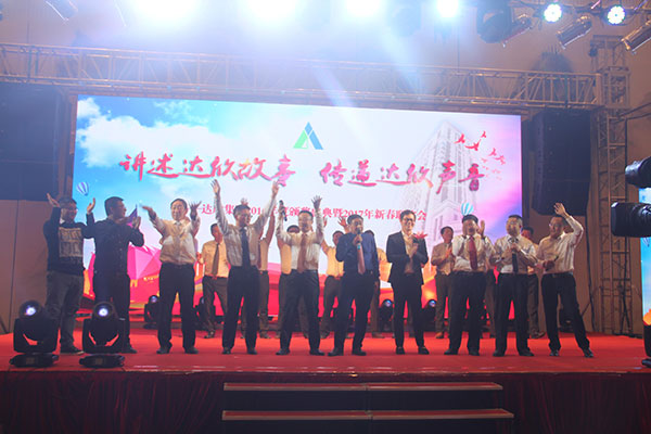 集團(tuán)高管們?cè)谂炫鹊摹斑_(dá)欣之歌”聲中激情登場(chǎng),公司董事長(zhǎng)馬和軍進(jìn)行了致辭答謝。他回顧了公司 一年來所取得的輝煌成績(jī),感謝社會(huì)各界及公司全體同志們的努力,并對(duì)公司的未來發(fā)展之路描繪了藍(lán)圖;接著,縣委書記陸衛(wèi)東發(fā)表重要講話, 他指出,建筑業(yè)是我縣的傳統(tǒng)產(chǎn)業(yè),也是一個(gè)富民強(qiáng)勢(shì)產(chǎn)業(yè),還是我縣財(cái)政收入的重要來源之一,作為縣內(nèi)的骨干企業(yè),達(dá)欣公司步入了公司歷史以來發(fā)展最快、榮譽(yù)最高、分配最多、貢獻(xiàn)最大的時(shí)期,他希望公司要加快發(fā)展,高起點(diǎn)定位,突出重點(diǎn),好中求快,實(shí)現(xiàn)達(dá)欣新飛躍。