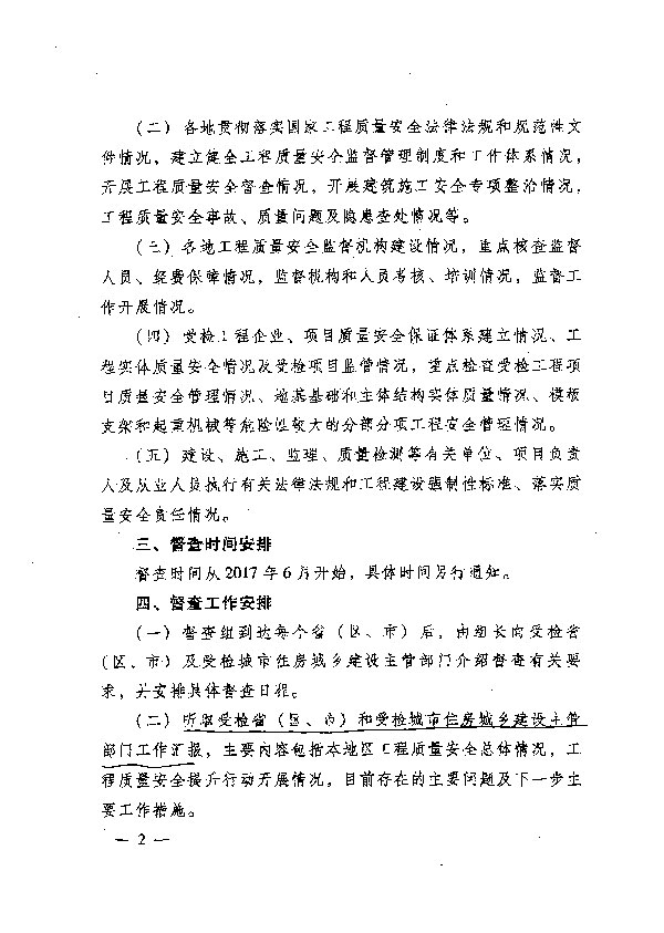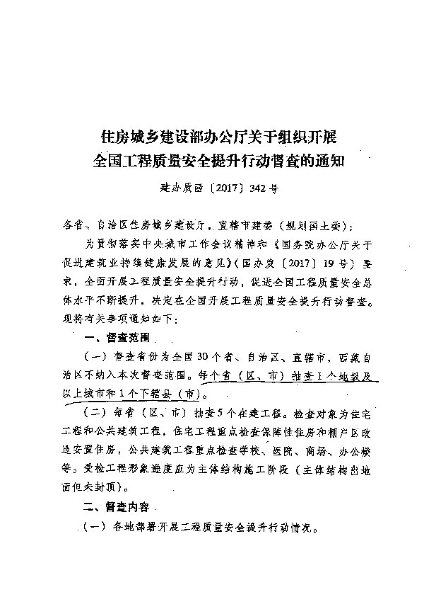 關(guān)于組織開展全國工程質(zhì)量安全提升行動督查的通知