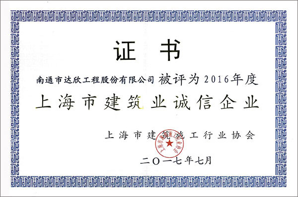 第一工程公司連續(xù)十年榮獲“上海市建筑業(yè)誠信企業(yè)”