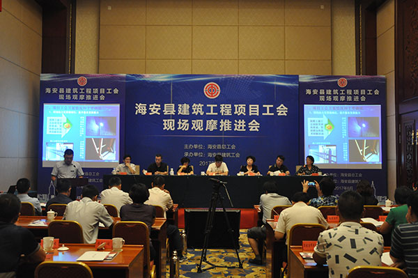 8月18日,海安縣建筑工程項(xiàng)目工會(huì)現(xiàn)場觀摩推進(jìn)會(huì)在石家莊太行國賓館召開。縣委常委、宣傳部部長嚴(yán)長江、市總工會(huì)副主席楊嘩娟、市建設(shè)局副局長楊娟、市建設(shè)行業(yè)工會(huì)主席朱小成、縣總工會(huì)黨組書記、副主席柴寶清、縣建管局局長賈伯根、副局長、工會(huì)主席徐培鴻等領(lǐng)導(dǎo)出席了會(huì)議。達(dá)欣集團(tuán)董事、副總經(jīng)理?xiàng)铎o、工會(huì)副主席吉春勤以及全縣一級資質(zhì)以上的建筑企業(yè)工會(huì)主席、海安駐石建筑企業(yè)部分代表100多人參加了會(huì)議。