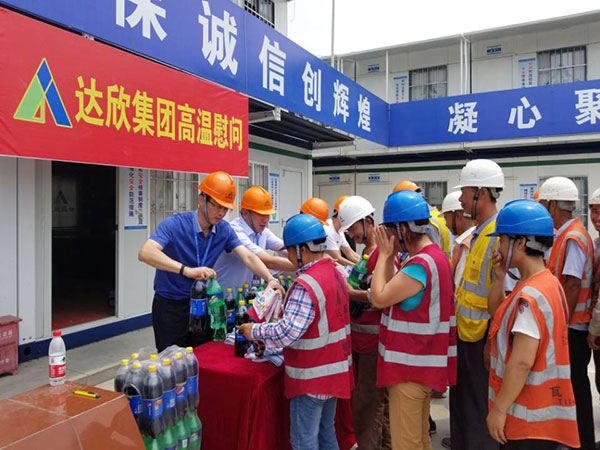 在項(xiàng)目部,集團(tuán)公司領(lǐng)導(dǎo)將人丹、花露水、雪碧等防暑降溫用品發(fā)放給每一位職工,同時叮囑大家夏季高溫作業(yè)時,注意防暑降溫。另外,員工養(yǎng)成良好的生活衛(wèi)生習(xí)慣,不疲勞上崗、不帶不良情緒上崗,以良好的精神狀態(tài)上好班。
