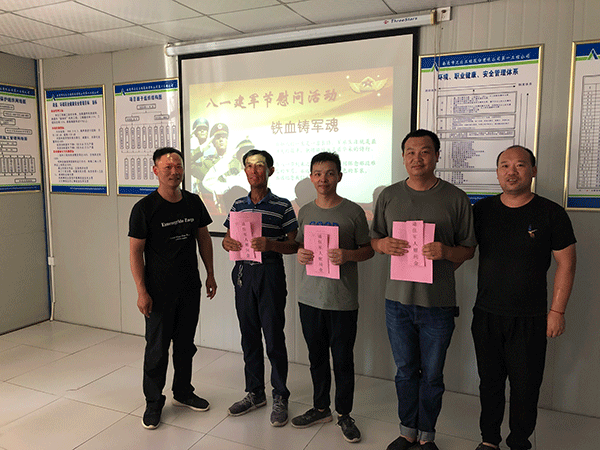 丁國東經(jīng)理向全體消防官兵和社區(qū)工作人員致以節(jié)日的問候并送上慰問品,感謝他們一直以來在維護(hù)社會穩(wěn)定,保護(hù)群眾生命財產(chǎn)安全、支持企業(yè)建設(shè)等方面作出的巨大貢獻(xiàn),同時表示我們作為江蘇進(jìn)新疆企業(yè),將積極配合好當(dāng)?shù)卣案髦鞴懿块T,為地方和諧穩(wěn)定發(fā)展做出應(yīng)有的貢獻(xiàn)。消防支隊政委、社區(qū)書記對我公司的到來表示感謝,希望今后繼續(xù)保持“軍民一家親”的深情友誼,為共同構(gòu)建和諧穩(wěn)定的新疆作出貢獻(xiàn)。