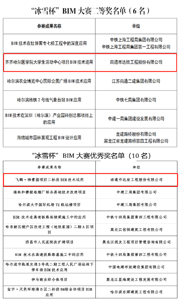 黑龍江省第一屆“冰雪杯”建設(shè)工程BIM大賽共收到30項(xiàng)成果,其內(nèi)容涵蓋BIM應(yīng)用的各個階段,通過初賽《飛鶴·御景園項(xiàng)目二標(biāo)段工程BIM技術(shù)應(yīng)用》榮獲“冰雪杯”BIM大賽優(yōu)秀獎,《齊齊哈爾醫(yī)學(xué)院大學(xué)生活動中心BIM技術(shù)應(yīng)用》進(jìn)入決賽并通過視頻直播答辯榮獲大賽二等獎。