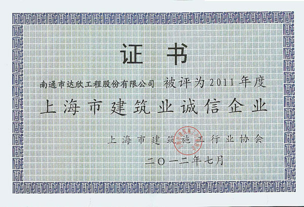 根據(jù)《上海市建筑施工企業(yè)誠信建設(shè)行業(yè)評價(jià)試行辦法》和《上海市建筑施工企業(yè)綜合實(shí)力排名辦法》、2011年度企業(yè)誠信建設(shè)相關(guān)考核、《指標(biāo)體系及評分標(biāo)準(zhǔn)》等內(nèi)容,第一工程公司在經(jīng)過申報(bào)、初審、征詢主管部門意見、上網(wǎng)公示四個(gè)環(huán)節(jié)后,最終由上海市建筑施工企業(yè)誠信建設(shè)行業(yè)評價(jià)委員會(huì)審定通過,榮獲2011年度“上海市建筑業(yè)誠信企業(yè)”稱號(hào)。這是達(dá)欣股份自易名以來連續(xù)五年獲此殊榮。此外公司還被評為2011年度“上海市建筑施工企業(yè)綜合實(shí)力進(jìn)步獎(jiǎng)”稱號(hào),承建的萬寶國際廣場項(xiàng)目榮獲2011年度上海市“白玉蘭”優(yōu)質(zhì)工程。