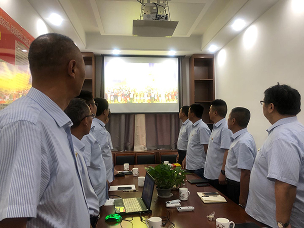 6月30日下午,第三工程公司支部全體黨員在齊唱高亢的國(guó)歌聲中開始了紀(jì)念黨的99華誕系列活動(dòng)。