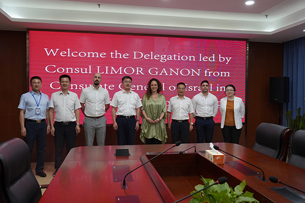 8月4日下午,以色列駐上??傤I(lǐng)事館領(lǐng)事葛麗茉LIMOR GANON、總領(lǐng)事高級顧問尤西YOSSI BEN SHITRIT、領(lǐng)事助理JOSEPH ALFASA 、喬瑩青、陸彥璇一行蒞臨集團(tuán)進(jìn)行商務(wù)訪問。海安市副市長張?jiān)?,海安市商?wù)局副局長史遐兵,集團(tuán)黨委書記、副董事長劉厚純,常務(wù)副總經(jīng)理王邦國陪同接待。