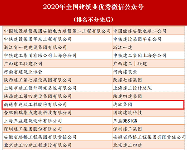 近日,由建筑時報社主辦的2020年建筑業(yè)微信公眾號運(yùn)維經(jīng)驗(yàn)交流研討會暨2020年全國建筑業(yè)優(yōu)秀微信公眾號頒獎典禮在揚(yáng)州召開。會上,公布了2020年全國建筑業(yè)“最具影響力”微信公眾號和2020年全國建筑業(yè)優(yōu)秀微信公眾號榜單。達(dá)欣集團(tuán)獲得2020年全國建筑業(yè)優(yōu)秀微信公眾號。
