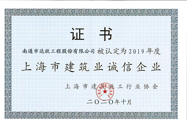 達欣集團再次榮獲“上海市建筑業(yè)誠信企業(yè)”稱號