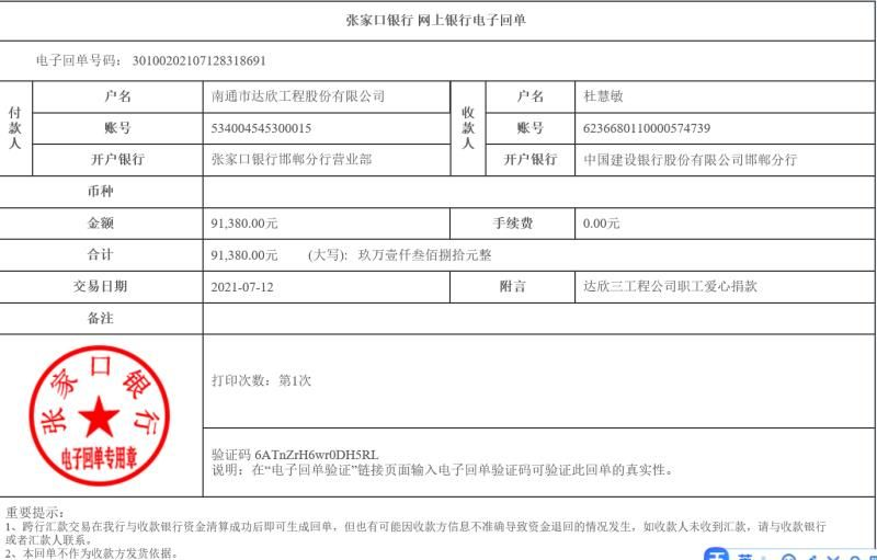 同事們在得知情況后,紛紛伸出援手,獻出一份愛和情誼,在大家的共同努力下,共籌到善款91380元,并于第一時間匯到杜慧敏賬戶里。希望能盡快走出病痛的折磨,早日康復!