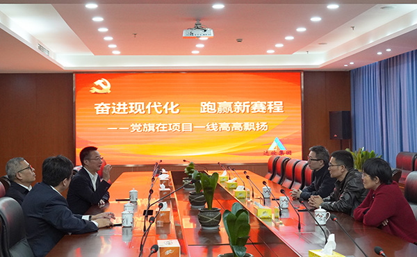 11月19日,南通市委黨史學(xué)習(xí)教育第八巡回指導(dǎo)組副組長(zhǎng)王鵬一行,在海安市宣傳部副部長(zhǎng)徐勇、胡集街道黨工委書(shū)記孫堅(jiān)的陪同下,調(diào)研集團(tuán)“黨旗在項(xiàng)目一線(xiàn)高高飄揚(yáng)”活動(dòng)開(kāi)展情況。集團(tuán)黨委書(shū)記劉厚純參加活動(dòng)。