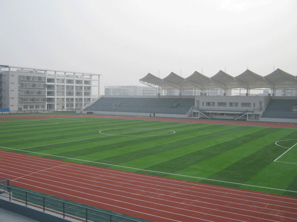 江蘇省海安縣職業(yè)教育中心校體育場為400米塑膠田徑運動場工程,田徑場占地面積16999m2,主看臺長150米,寬17.5米,輔看臺長104米,寬10米。主看臺占地面積為2173.4m2,輔看臺占地面積為1008m2,田徑場跑道為混合型塑膠面層,中間足球場為進口人工草皮,周邊輔助區(qū)為人工草皮。該體育場的建成將為海安群眾性體育活動的開展提供便利。