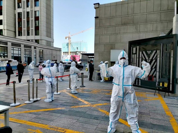 近日,烏魯木齊市米東區(qū)出現(xiàn)了疫情反撲,全市開展為期14天的每日核酸檢測。會展社區(qū)在建項目多,流動人口多,檢測點多且面廣,社區(qū)工作人員工作量驟增。十一分隊吾悅廣場項目青年志愿者們得知后,立即行動。有的協(xié)助測溫、有的維護現(xiàn)場秩序,現(xiàn)場秩序井然。