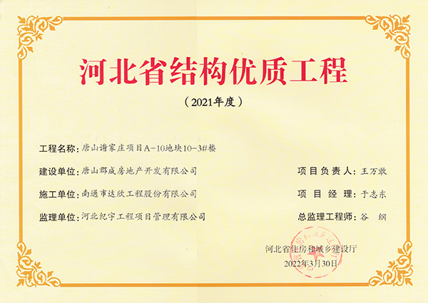 集團(tuán)五項(xiàng)目榮獲河北省結(jié)構(gòu)優(yōu)質(zhì)工程