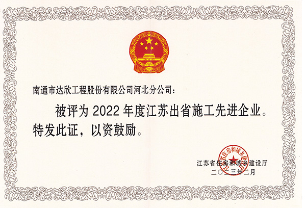 第四、六黨支部被評為“2022年度江蘇進(jìn)津、冀施工優(yōu)秀黨組織”;楊靜、陳正進(jìn)、馬和春、高云青被評為“2022年度出省建筑施工先進(jìn)個(gè)人”;徐仁忠、傅海榮被評為“2022年度江蘇進(jìn)津、冀施工先進(jìn)企業(yè)經(jīng)理”;謝廣財(cái)、徐祝軍被評為“2022年度江蘇進(jìn)津、冀施工優(yōu)秀黨務(wù)工作者”;楊靜、傅海榮、張維琪、崔恒俊被評為“2022年度江蘇進(jìn)津、冀施工優(yōu)秀共產(chǎn)黨員”;謝兆波、劉華慶、毛異東、朱玉平被評為“2022年度江蘇進(jìn)津、冀施工優(yōu)秀建造師”;馬和春、郝路、束長春被評為“2022年度江蘇進(jìn)津、冀施工先進(jìn)工作者”。