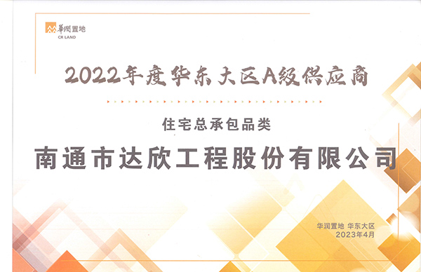 達(dá)欣集團(tuán)自2018年與華潤置地合作以來,在無錫、南京、南通、蘇州等地,依據(jù)完善的工程質(zhì)量管理體系,項(xiàng)目品質(zhì)及履約標(biāo)準(zhǔn)先后得到華潤置地大區(qū)公司、華潤置地的年度贊譽(yù)與肯定。