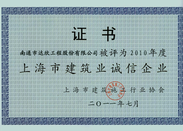 第一工程公司榮獲“2010年度上海市建筑業(yè)誠信企業(yè)”稱號