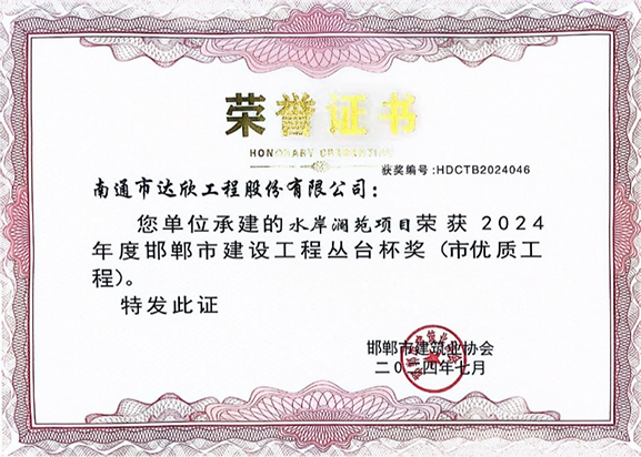 水岸瀾苑項(xiàng)目獲邯鄲市優(yōu)質(zhì)工程“叢臺(tái)杯”