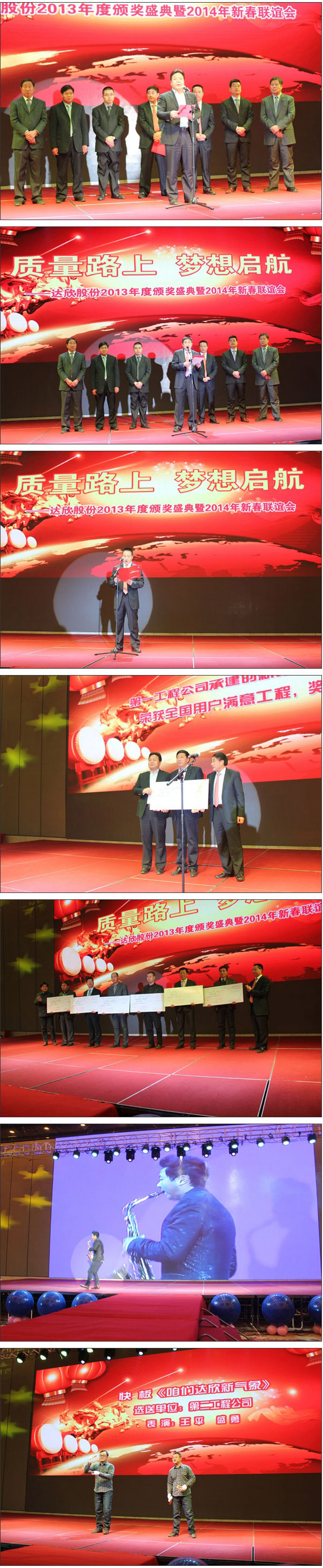 頒獎(jiǎng)活動(dòng)在澎湃的“達(dá)欣2013”影片聲中激情開場,公司董事長馬和軍進(jìn)行了致辭答謝。他回顧了公司一年來所取得的輝煌成績,感謝社會(huì)各界及公司全體同志們的努力,并對(duì)公司的未來發(fā)展之路描繪了藍(lán)圖;接著,縣委書記陸衛(wèi)東發(fā)表重要講話,他指出,建筑業(yè)是我縣的傳統(tǒng)產(chǎn)業(yè),也是一個(gè)富民強(qiáng)勢(shì)產(chǎn)業(yè),還是我縣財(cái)政收入的重要來源之一,作為縣內(nèi)的骨干企業(yè),達(dá)欣公司步入了公司歷史以來發(fā)展最快、榮譽(yù)最高、分配最多、貢獻(xiàn)最大的時(shí)期,他希望公司要加快發(fā)展,高起點(diǎn)定位,突出重點(diǎn),好中求快,實(shí)現(xiàn)達(dá)欣新飛躍。