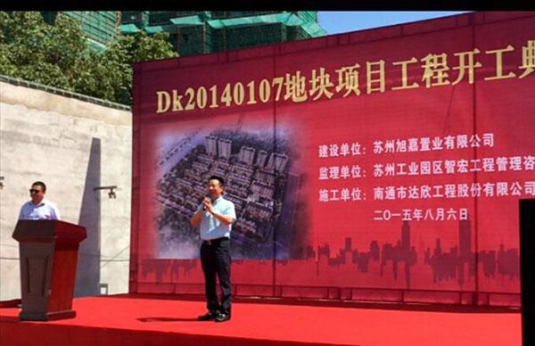 旭輝集團(tuán)副總裁、蘇州旭輝事業(yè)部總經(jīng)理王總發(fā)表了講話,他對(duì)該項(xiàng)目寄予厚望,并充分相信達(dá)欣公司能高標(biāo)準(zhǔn)、嚴(yán)要求地完成該項(xiàng)目的建設(shè),并祝愿工程順利完工。