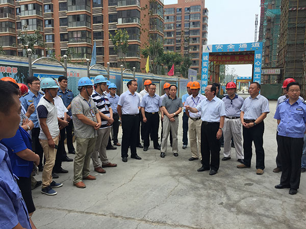 8月27日上午,宿遷市副市長李榮錦率市住建局主要負(fù)責(zé)人及宿遷市10余家建設(shè)單位、監(jiān)理單位、施工單位負(fù)責(zé)人蒞臨第一工程公司承建的星月城二期進(jìn)行參觀考察,這是李榮錦副市長繼8月18日檢查指導(dǎo)后第二次來我項目,重點推介項目揚塵噴水設(shè)備系統(tǒng)控制做法及現(xiàn)場安全文明標(biāo)準(zhǔn)化施工特色。